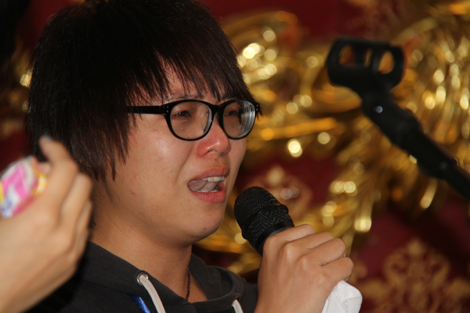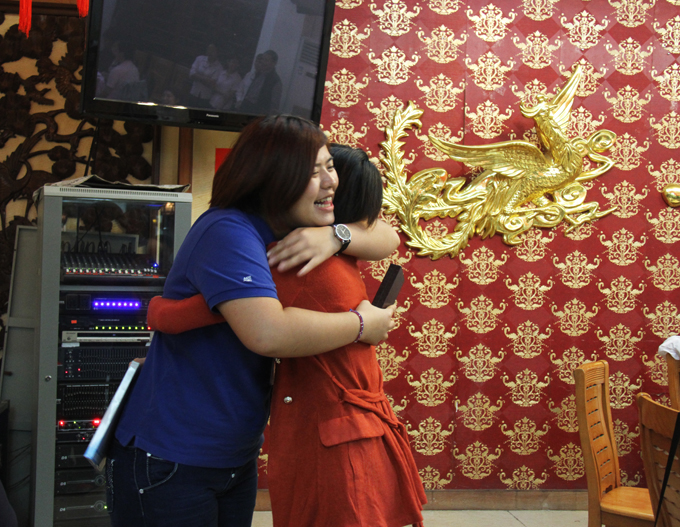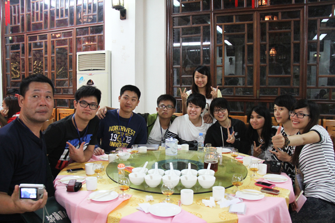 9日,在告别晚宴中,河台两地师生共同举杯。双方代表学生上台讲述相处4天来的感受,我校学生花权秀开口的第一句:“千言万语不知从何说起,我只知道很舍不得大家”后就哽咽住了,与她“配对”的台湾学生更上台拥抱了她,两人流下不舍的眼泪。随后,两地学子纷纷互换纪念品,并拍照留念。