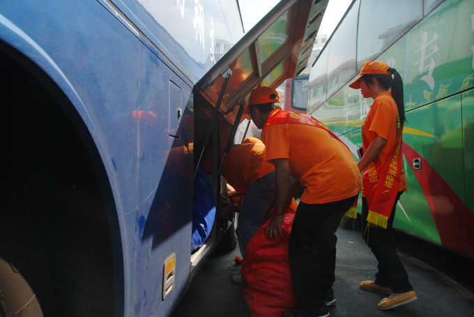 在接待现场,我校志愿者分为了“引导、候车、签到、行李和机动”五个小组,各个小组分工合作,团结一致,迎新工作井然有序进行。为了确保在细节上不出问题,以免物品掉乱,志愿者还在他们的行李箱和矿泉水上贴上标签。并热心的为晕车的学生做简单的医疗。 强风辣日也阻挡不了志愿者们想为师弟师妹奉献自己的一份力量的热情,志愿者们的服装汇成了一片橙色的海洋。在工作中他们要求自己做到“三个一”,一个微笑,一杯水,一声问候。记者在现场发现一个简单的饭盒,一瓶水,这就是志愿者们的一顿午餐。他们从早上8点服务到晚上6点,个别志愿者甚至服务到晚上9点,不管多累,他们总是说: “能为师弟师妹们奉献一份力量我们感到很开心很温暖”。 一位来自清远的陈同学说到:“师兄师姐们都很热情,一路上都有师兄师姐的帮忙,对于学校的接待安排感到很贴心”。有一位家长这样告诉记者: “看到志愿者的服务态度就知道河职院真的越办越好,让我们对自己的孩子在学校感到很放心”。部分车站群众在接受采访时也对我校迎新志愿者给出了很高的评价,并肯定了现代大学生的文化素质和服务态度。 据悉,我校今年被评为省示范性高职院校重点培养对象,招生形势大好,录取出档分数创历史新高,超额完成今年的招生任务,共录取2012级新生5833名,截止15日晚17点,共有4428名新生报到注册,新生报到率达75.95%。