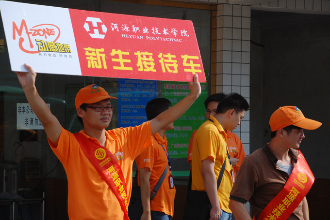 9月14日,学校迎新工作拉开帷幕,我校迎新工作分为校内校外两大区域, 学校团委、青年志愿者协会、社团联合会、艺术团分别负责到新城车站、汽车总站、火车站和源城客运站四个站点迎接新生。我校共派出14辆大巴及101名志愿者前往四个车站迎接新生回校报到。