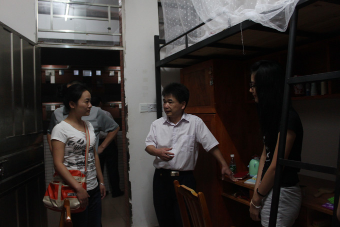 9月15日,副校长唐汉芳在学工处处长何智聪,及相关人员的陪同下走访新生宿舍,慰问新生。 在走访中,唐汉芳细心询问了新生家庭情况,认真回答了新生的提问,并鼓励新生要“随遇而安”,树立信心,快速适应新的环境,融入学校,找到大家庭的温暖。 同时,他叮嘱相关部门妥善安置新生,组织人员排查宿舍故障,切实为新生解决困难。