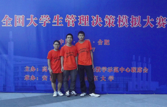 据悉,2012全国大学生管理决策模拟大赛自启动以来,得到了来自全国近600所高校的积极响应,18000多支团队进行参与。通过常规赛、初赛、复赛、半决赛的激烈角逐,我校代表队与中山大学、安徽大学、上海海事大学等几十所高校齐聚安徽大学进行总决赛竞赛,我校代表队通过巅峰对决,最终获得了全国二等奖。 指导老师:陈德清、邓文博、叶影霞 参赛学生:何志浩、江泽文、陈瑜