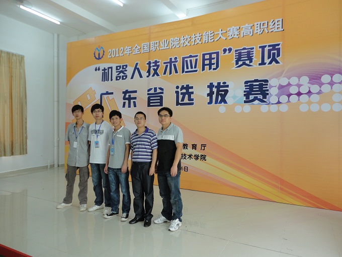另悉,2012全国职业院校技能大赛广东选拔赛“机器人技术应用”项目5月4-6日在顺德职业技术学院举办,由我校机电学院数控专业学生及指导教师组成1支队伍前往参赛。此次机器人项目比赛主题为“智能工厂”, 分机器人组装、调试和机器人运行两个环节进行,经过激烈的角逐,我校代表队取得第四名的好成绩,获得二等奖,将代表广东队参加6月份在顺德职业技术学院举办的2012全国职业院校技能大赛“机器人技术应用“项目总决赛。