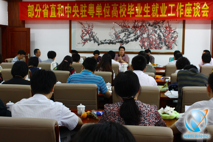 4月18日下午,广东省教育厅调研员渠静宁与部分省直和中央驻粤单位领导在我校行政楼第一会议室召开高校毕业生就业工作座谈会。我校副校长陈农心、就业指导中心相关人员出席此次座谈会。