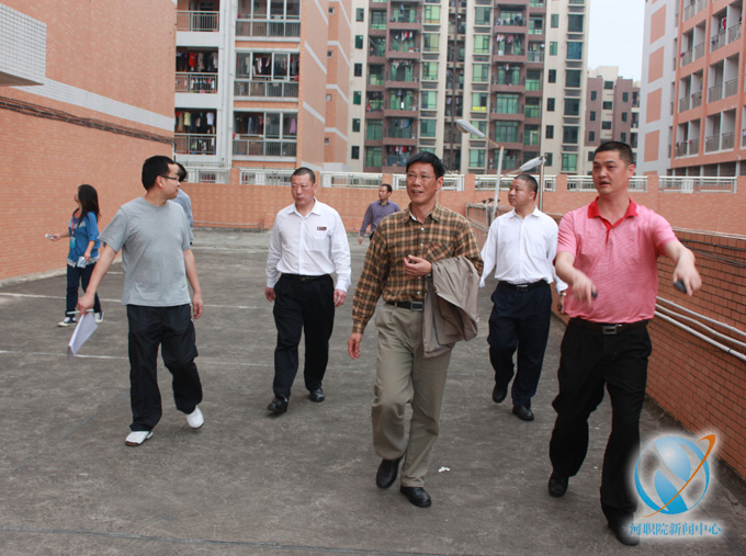 3月21日下午,校党委书记高仁泽针对学生管理与服务问题,走访了我校学生宿舍区。随行的有学工处、资产后勤处及中骏物业相关负责人。