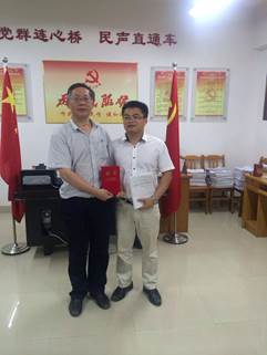 交流活动结束后,还进行了简单的聘任仪式。红研中心主任杨党校给张伟教授颁发中心特约研究员聘任证书。张伟教授表示,作为红研中心特约研究员,今后会多关注河源地方的红色文化,多参加河源地方举办的活动,多为《红色河源》期刊撰稿。
