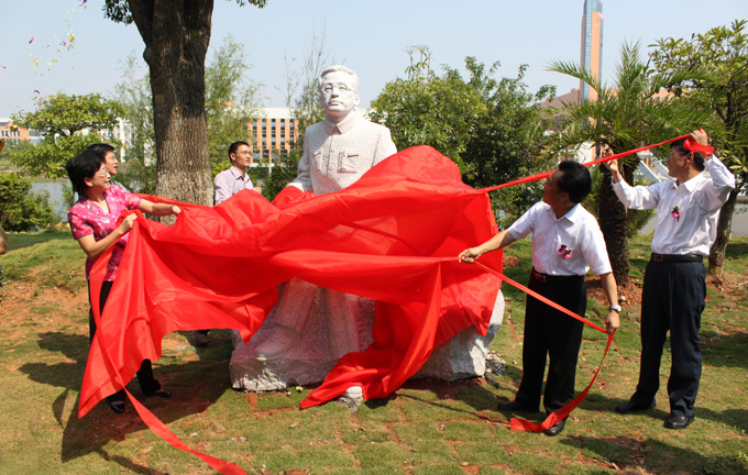 随后,在场人员移步我校南门为陶行知塑像揭幕。副校长陈农心介绍了陶行知提出的“生活即教育”、“社会即学校”、“教学做合一”三大主张,及其对河职院前身――老隆师范学校所产生的积极影响。陈农心表示,我校大力推行“教学做一体化”模式改革,切实提高学生的实践能力和职业能力,正是陶行知先生“教学做合一”思想的生动体现。