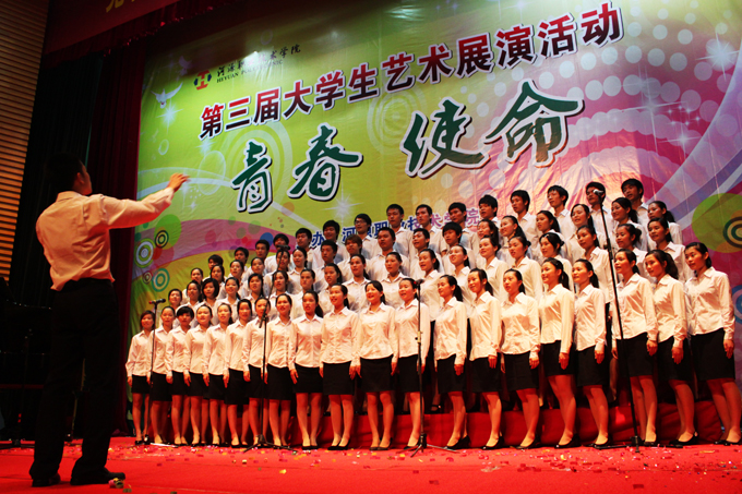 6月20日,以“青春使命”为主题的第三届大学生艺术展演活动在我校学术报告厅开幕。活动分为“党在我心中”合唱比赛和器乐表演比赛两个环节。