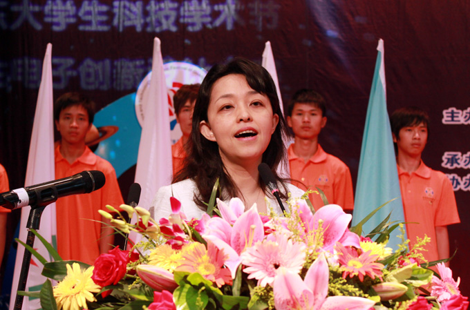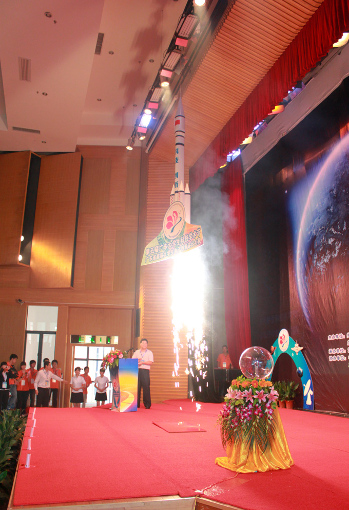 5月23日,首届广东大学生电子创新设计大赛决赛在我校举行。团省委副书记曾颖如参加活动并启动标注“创新、科技”的火箭模型,此后活动正式开幕。