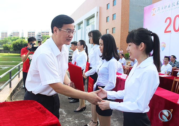 典礼在雄壮的国歌声中拉开了序幕。在这庄严和激动的时刻,校长陈德清为各二级学院毕业生代表颁发毕业证书;副校长赖小景宣读表彰2016届优秀毕业生的决定,副校长王小宁宣读表彰2016年全国职业院校技能大赛获奖17位学生的决定;校党委书记段邦贤、副书记韦荣分别为受表彰的毕业生颁发证书和奖金。