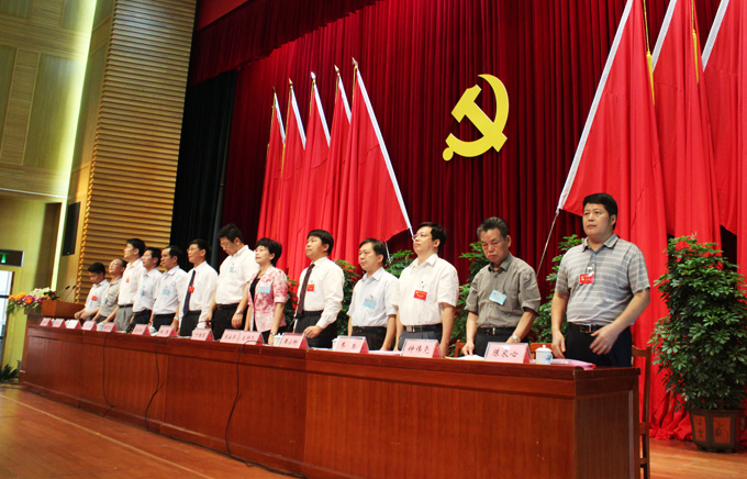 在党徽和红旗的映照下,与会代表胸佩鲜红的代表证,庄严步入会场。大会在雄壮的国歌声中正式开幕。 市委组织部部长白涛、副市长叶维园、市纪委副书记邹道浓、市直工委副书记黄小柳、市教育局局长苏晖、原老隆师范学校领导钟伟尧、钟录宏,主席团成员高仁泽、刘安华、韦荣、陈德清、陈农心、黄向明等出席大会。开幕式由刘安华主持。
