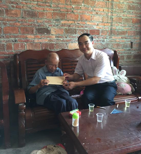 随后,赖小景深入到下石村老党员、困难党员家中进行慰问。赖小景亲切地询问了每一户老党员、困难党员的个人及家庭情况、身体状况等,与他们进行了轻松的交谈,感谢他们在以前的工作中作出的贡献。赖小景副校长代表我校党委对老党员、困难党员致以节日的问候和祝福,并送上了慰问金。受到慰问的党员心情激动,对党的关怀表示感激。
