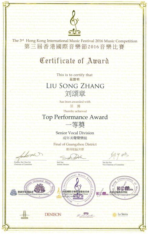 (艺术与设计学院通讯员 宋丽娟)6月12日,第三届“香港国际音乐节”广州赛区在广州越秀区文化馆举行,我校刘颂章老师荣获广州地区美声组一等奖。