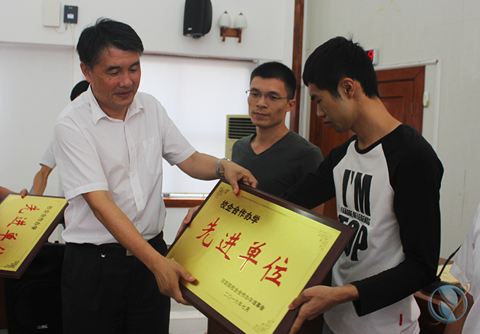 会议还对2015-2016学年表现突出的河源市鸿宇机械设备有限公司等8家合作企业单位和袁河链等8名企业个人进行了表彰。