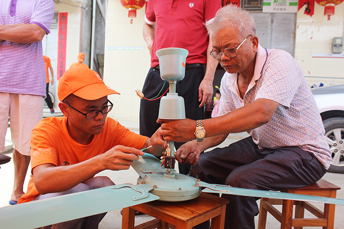 义务维修队作为学校“三下乡”社会实践活动的品牌项目之一,是志愿者们一个实践与学习的过程。“三下乡”志愿服务活动开展至第三天,义务维修队已为居民维修家用电器共126件。志愿者们运用自己在学校所学习的专业技能为村民们认真修理家用电器,志愿者在高温环境中为村民修理一件件小家电,汗水早已浸湿他们的衣衫,但却丝毫不减他们维修的热情,依然坚守在志愿服务的一线岗位上。