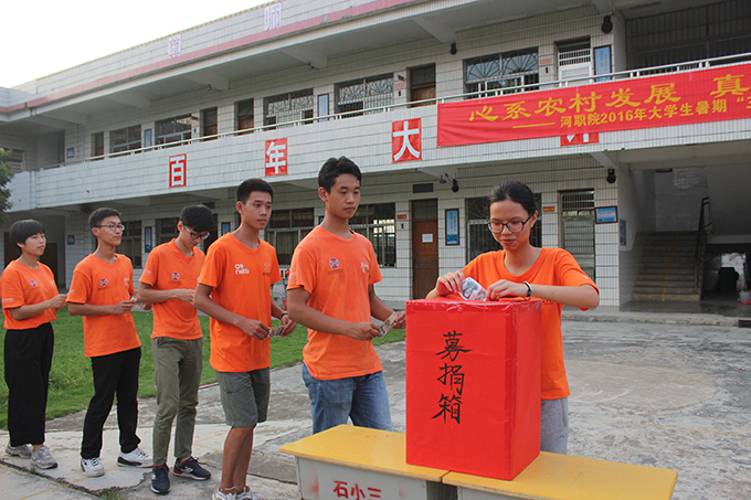 关爱农民工子女队在“三下乡”社会实践活动中,围绕“一样的蓝天下,一样温暖的家”的工作主题,通过与教育帮扶队协商,开展了课间组织学生玩游戏、开展第二课堂、实地走访贫困村民情况等关爱活动。活动期间,关爱队在下石村分别探访了一位老党员和七户贫困家庭,并于21日精心组织了爱心募捐会,筹得善款982.4元,全部用于购买物资捐助给关爱队筛选出来的4户贫困家庭。