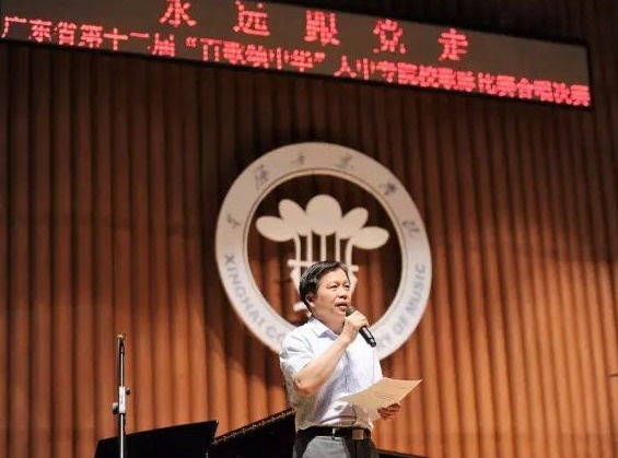 为庆祝中国共产党成立95周年,深入学习贯彻落实习近平总书记在文艺工作座谈会上的重要讲话精神,唱响中国梦,传递正能量,讴歌党的丰功伟绩,坚定爱国爱党的信念,弘扬社会主义核心价值观,根据广东省委宣传部《关于举办“永远跟党走——广东省第十二届‘百歌颂中华’大中专院校歌咏比赛”活动的通知》的要求和安排,广东省教育厅在全省大中专院校范围内开展“永远跟党走——广东省第十二届‘百歌颂中华’大中专院校歌咏比赛”活动,活动由广东省教育厅主办,星海音乐学院具体承办,评委老师由国家一级演员李素华、女高音歌唱家,星海音乐学院教育学院副院长皮晓彩教授、华南师范大学音乐表演系主任丁义教授和著名男高音歌唱家乔建军等十多位专家组成。本次歌手比赛全省共有100余所高校派出代表参加,经过2016年7月4日第一轮碟选,选出了前30名选手进入7月15日总决赛。其中,我校刘颂章老师是全省前30名选手之一。