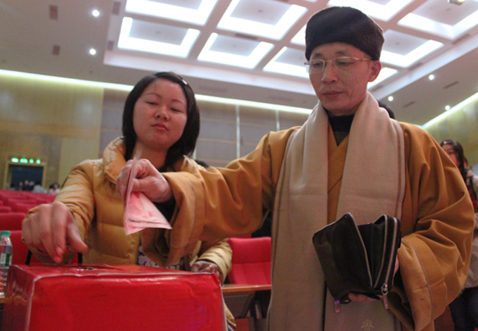 晚会结束后,爱心人士为国旺小朋友捐款