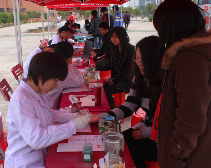 初春寒冷,细雨绵绵,寒冷的天气却阻挡不了我校学子献血的爱心。现场搭起了临时采血站,立即吸引了同学们的目光,他们聚集到献血车前咨询、领取表格填写相关信息,并进行爱心献血。现场服务的志愿者们热情地帮助工作人员发放资料、讲解献血小知识,耐心回答献血者的问题,提醒大家献血注意事项,并带头参加无偿献血。