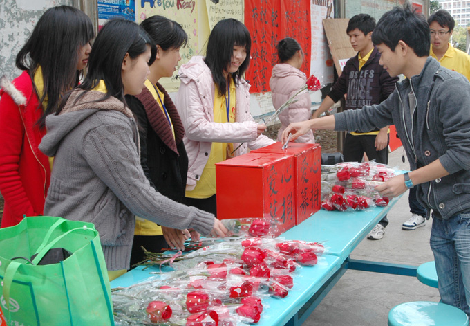 参加活动的同学纷纷表示,只需自愿捐款最低3元,就可以获得一朵红玫瑰,在买玫瑰送异性朋友时也奉献了自己的爱心,意义更非凡。