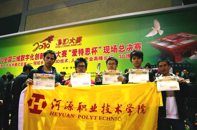 “学3D,用3D,我创造,我快乐”, 11月27日,2010全国三维数字化创新设计大赛总决赛于江苏省常州市科教城拉开序幕。经过三天激烈的比拼,我校电信学院计算机多媒体技术专业派出的“零点创意”代表队在比赛中最终荣获三等奖。