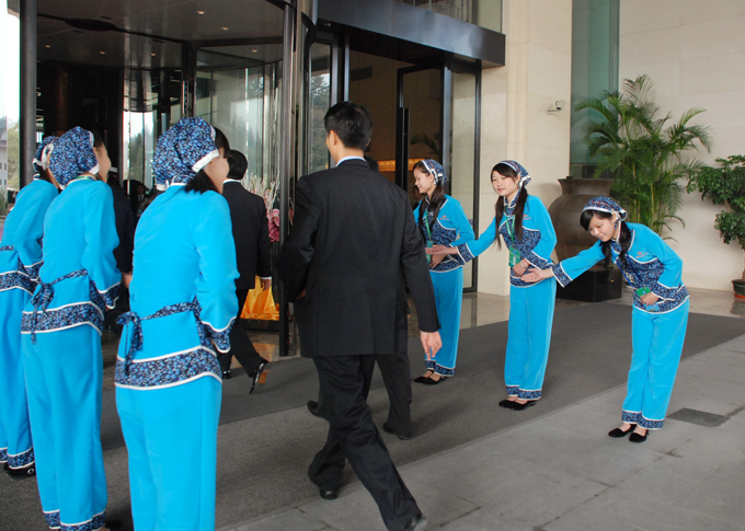 据了解,此次共有贵宾礼仪49人、接待迎宾礼仪24人、机场接待礼仪16人、高速公路迎宾礼仪10人及轮椅协助志愿者6人,分别协助挂钩单位做好贵宾的报到、入住、会议咨询、参会指引、送站等服务。同时对特殊嘉宾实行一对一个性化服务,从嘉宾报到、指引入住、行李搬运、用餐指引、出行咨询、活动提醒、参会期间照顾行走、跟随提包等方面进行细致、全面的服务。