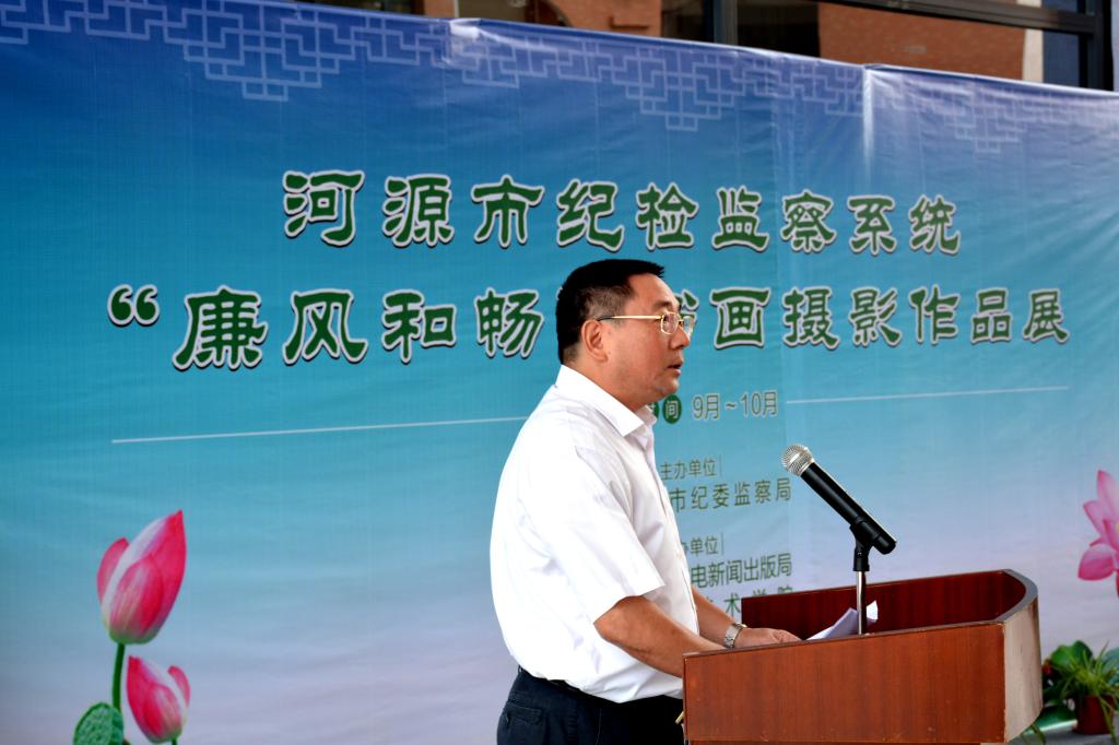 (监察审计处通讯员 蔡景庭)9月28日上午,河源市纪检监察系统“廉风和畅”书画摄影作品展在我校图书馆举行开展仪式,市委常委、市纪委书记胡海广同志,我校党委书记段邦贤,校长陈德清,政协副主席,副校长唐汉芳、副书记(纪委书记)韦荣,副校长赖小景,市纪委监察局机关全体干部职工、各派驻纪检组(纪检监察组)组长;我校处室院部副科以上干部参加了开展仪式。本次书画摄影展共有书法作品90件,摄影作品94件,市民可在10月底前到展馆参观。