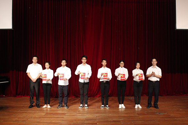 副校长赖小景及团委书记陈晓峰为培训班学员代表授书。随后,赖小景为培训班全体学员们作了《长征—不朽的红色记忆》纪念红军长征胜利80周年教育讲座。他围绕“长征”这一主题,以图文并茂的方式解析“什么是长征”、“为何要长征”、“长征的部队”、“长征的过程”、“长征的意义”等五个方面的内容,并结合历史史实、英雄事迹、相关诗词等形式加深学员们对“长征”的理解。
