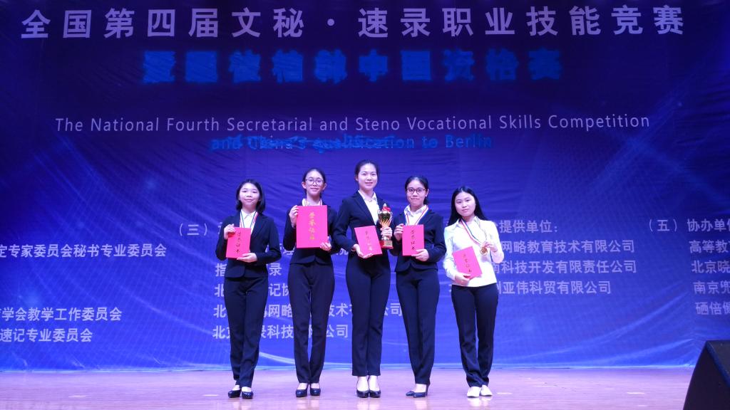 我校文秘专业高度重视本次赛事。在专业老师的指导下,选手们进行了近两个月的刻苦训练。在比赛中,面对众多强手,我们的选手沉着应战,最终两人荣获“速录办公专项技能奖”一等奖,三人荣获“速录文秘专项技能奖”二等奖,一人荣获“蒙目速录单项奖”三等奖。