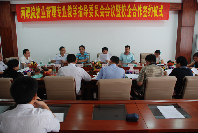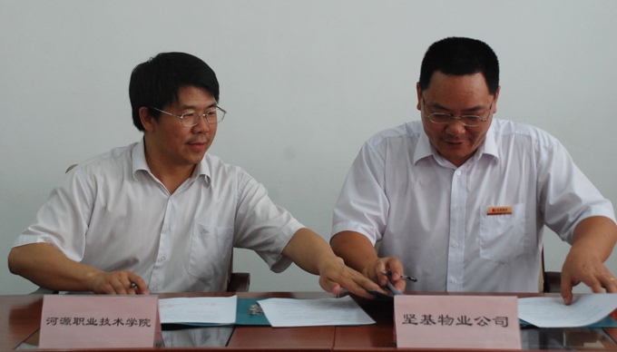 7月6日,刘安华校长代表我校分别与河源市坚基物业管理有限公司、河源市诚信物业公司签订校企合作协议书。这是我校大力推行校企合作的又一举措。 签约仪式暨物业管理专业教学指导委员会会议在第一会议室举行。会上,物业管理专业建设指导委员会各委员针对我校专业培养目标、人才需求、毕业生就业去向、校企合作、专业学生顶岗实习等事宜进行了商议。 物业公司的代表还向在场的领导嘉宾介绍了物业管理人才所需的主要知识和技能。 据悉,物业管理专业此次签订的校企合作协议,是我校继与河源市镜花缘景区广东汉能光伏有限公司后,又一校企合作新举措。这为物业管理专业提供“学”与“练”结合以及顶岗实习的机会。 出席此次会议的还有工商管理学院相关负责人。