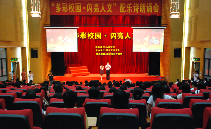 5月18日,由我校人文学院主办,演讲与口才协会承办的“多彩校园 闪亮人文”配乐诗朗诵会在报告厅顺利举行。我校党委副书记韦荣,教务处、学工处、校团委等相关负责人出席了晚会。