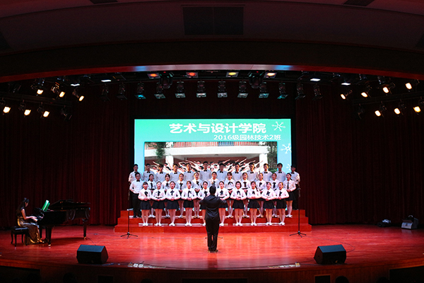 在随后的校歌、班呼展演活动中,一支支班级队伍以饱满激昂的精神状态踏上舞台,洪亮而充满活力的校歌歌声响彻大厅,一句句各具班级特色的班呼口号更是赢的在场观众的阵阵掌声。最后,来自艺术与设计学院的园林技术2班以场外投票得票数最高荣获本次活动“最佳人气奖”。