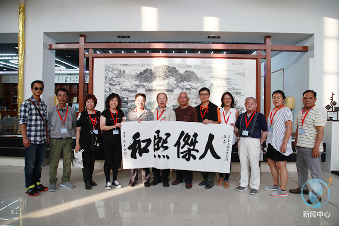 最后,骆文冠为恳亲团提笔挥毫题字“人杰熙和”,并与恳亲团互赠礼物。