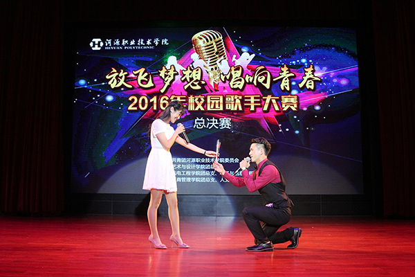 (校团委通讯员 黄志远 学生文字记者 罗文皓)11月24日晚,我校2016年校园歌手大赛总决赛于艺术楼演播厅圆满落幕。我校党委书记段邦贤,河源市山歌剧团团长欧阳山,我校副校长赖小景、团委书记陈晓峰、相关处室负责人、校团委全体老师、各二级学院团总支书记、九大学生组织及各协会学生干部代表共同出席了此次活动。