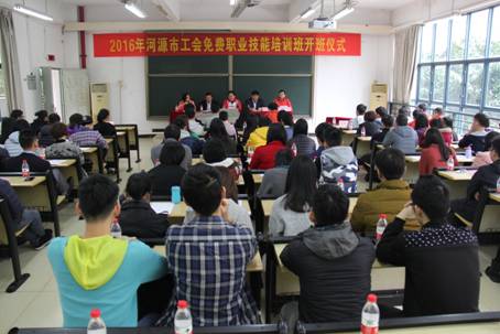 (继续教育学院通讯员 廖远兵 工商管理学院通讯员 朱智)11月29日,由市总工会与我校联合举办的2016年河源市免费职业技能培训班开班仪式在我校教学楼C201举行。河源市总工会副主席徐志强,我校副校长王小宁,继续教育学院、工商管理学院、学校工会有关负责人出席了此次开班仪式。