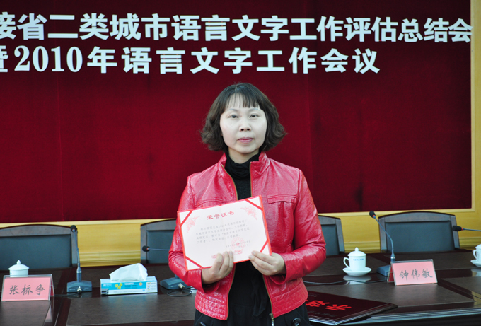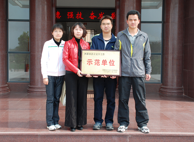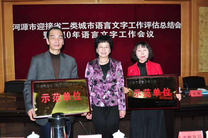 3月17日,我市召开了河源市迎接省二类城市语言文字工作总结大会暨2010年市语言文字工作会议。我校荣获河源市语言文字工作示范单位称号,我校负责迎接省二类城市语言文字工作材料评估的国家级普通话测试员郑尔君老师荣获“河源市迎接省二类城市语言文字先进工作者”荣誉称号。