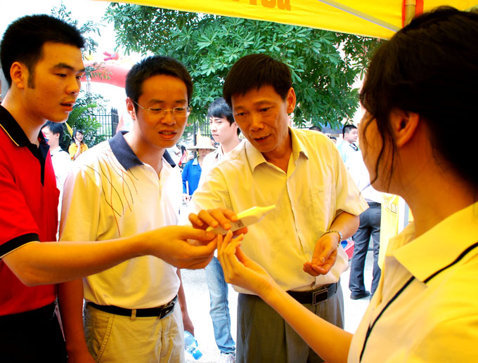参与今年迎新工作的有学生志愿者500多名,新闻报道组、导游组、保卫组近20个工作组,一个学生负责人说:“我们有责任和义务把今年的迎新工作做好,对这次迎新工作,我们作好了充分的准备和周密的安排,将全方位为新生及家长展开指引工作及为他们提供温馨服务。”在迎新现场,记者发现,不同于往年,今年新增了对录取通知书的防伪检测、加强保卫工作等,此外,针对当前甲型流感的广泛传播,我校在防卫工作中,对有感冒、发烧等状况的同学作出相应的检测防疫工作措施。