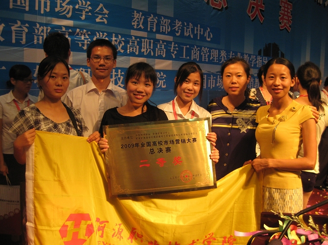 近日,在2009全国高校市场营销大赛总决赛中,我校学生组成的参赛队伍与来自全国各地143所高校的643名选手经过两天的同台激烈角逐,取得骄人成绩,荣获二等奖。