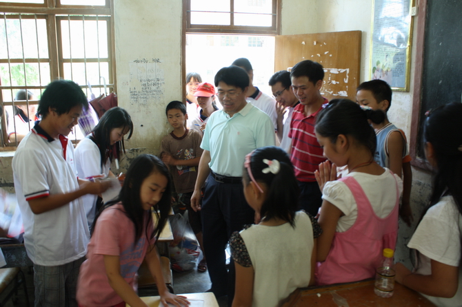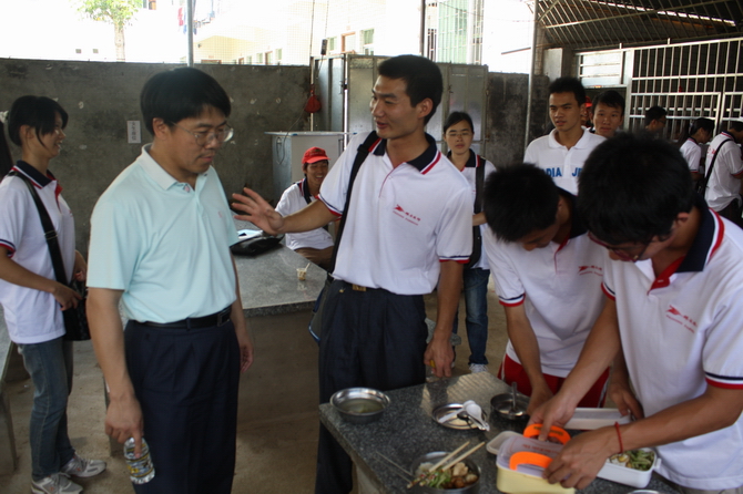 刘安华校长一行莅临服务点后,亲切地向带队老师了解了暑假“三下乡”社会实践活动紫金苏区服务点相关工作的开展情况,并亲临义务支教的现场,检查了义教老师们的工作情况,细心查看了受教学生的作业。志愿者们认真负责的态度得到了刘校长的充分肯定。随后,刘安华校长还走访了志愿者们的宿舍、食堂等地,并亲切地询问志愿者们的生活情况。刘校长说,同学们要学习革命家不怕苦、不怕累、不怕流血的精神,努力提高自身的综合素质,为社会主义建设做出自己的贡献。