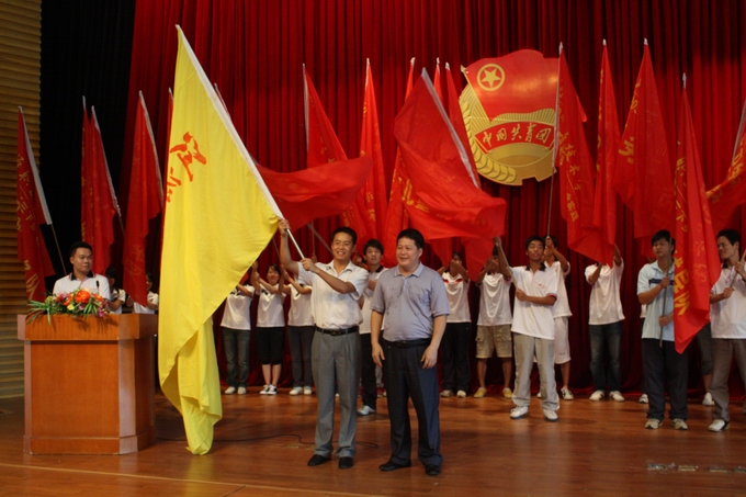 随后,带队老师、校团委相关负责人、陈农心副校长分别为“三下乡”志愿者授服务队旗、志愿者旗、校旗。大会伴随着青年志愿者之歌胜利落下帷幕。