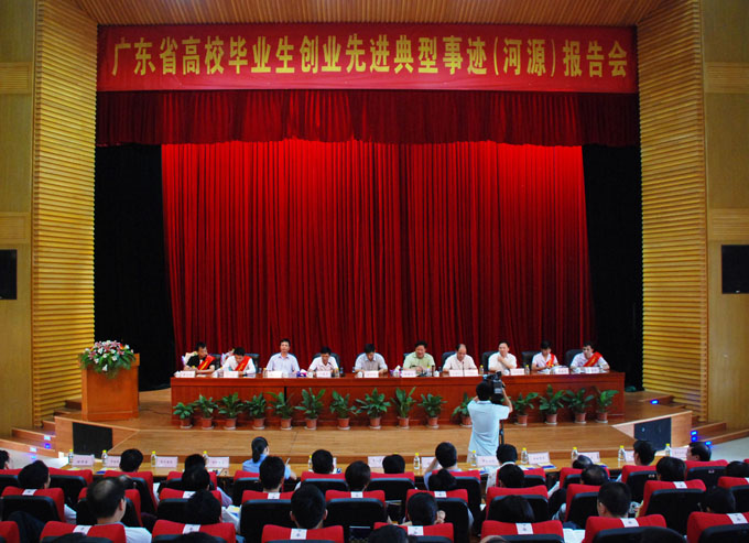 为进一步学习先进、树立典型、鼓励和支持我市大学生以创业带动就业,扩大就业,推动我市经济的发展,6月25日,广东省高校毕业生创业先进典型事迹河源报告会在我校学术报告厅举行。此次大会特邀广东省高校毕业生创业先进代表李政伟、邱健、莫国勇和黄海燕作先进典型事迹报告。市委常委、副市长杨耀初,各市直单位,市、县人事局,各学校、院系相关负责人及学生代表均出席了此次大会。