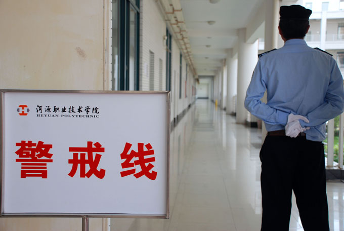 考试期间,各部门紧密配合,考生从容不迫,考场秩序井然。