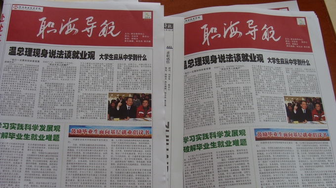 为使09届毕业生更好地了解目前就业的形势和政策,做好就业前的准备工作和要求,我校就业指导中心组织了毕业生们进行了就业毕业教育,邀请了往届优秀大学生进行创业就业汇报会,编印了对今年大学生就业创业有指导意义的简报《职海导航》,通过各种教育手段告诉毕业生们面对就业要自信乐观、谦虚请教、有备而战,争取找到一份理想的职业。
