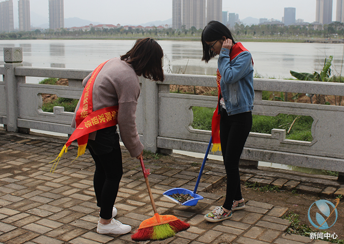 在活动过程中,身带红色绶带的志愿者大力弘扬雷锋吃苦耐劳、积极奉献的精神,细致认真地打扫着道路上的落叶、烟头、包装袋等垃圾。随着清扫范围的扩大,志愿者各自分散开展清扫,大大提高了清扫效率,经过半个小时的劳动,东江边恢复了干净美丽的样貌。