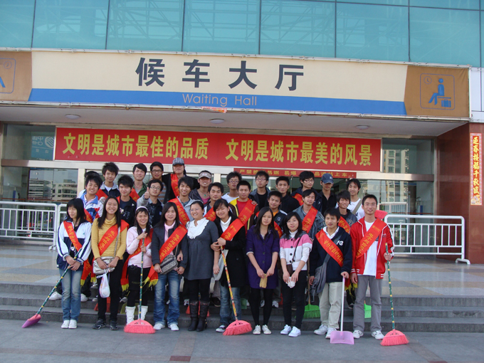 我校电子与信息工程系08软件班自发组成环保队服务火车站