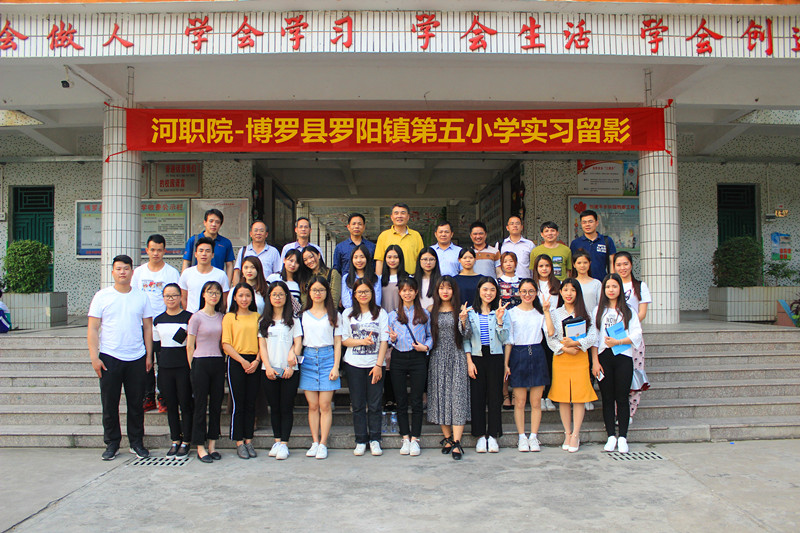 检查组与博罗县教育局领导、罗阳镇第五小学实习生合影