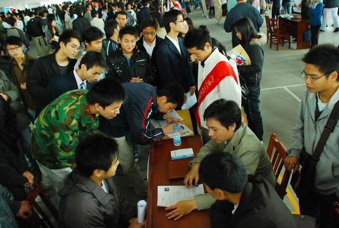 招聘会首场吸引了上千人前来应聘,求职者大多来自我校2009届的应届毕业生。此外,往届毕业生也怀揣各自的简历前往招聘会试着寻找适合自己的工作。
