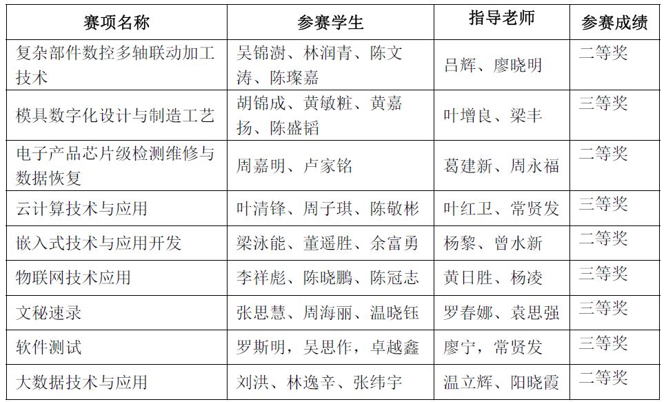 截止6月8日,我校代表广东省参加2017年全国职业院校技能大赛的9个赛项全部完结,共获得4个二等奖、5个三等奖,为广东省和学校挣得了荣誉。其中,“复杂部件数控多轴联动加工技术”赛项总分排名全国第4名获二等奖,为本次国赛我校取得的最好成绩。