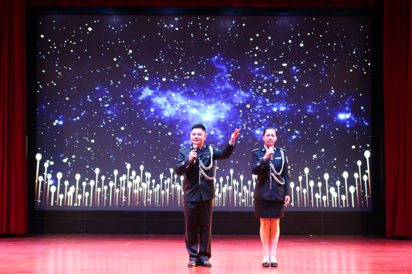 朗诵会以一首富有感情的诗文《为领路者高歌》拉开了序幕,壮志豪迈的语调点燃了现场热烈氛围。本次朗诵会主要围绕红色记忆、丰碑礼赞、复兴旗帜三个主题篇章展开,有声情并茂的《军礼》、《赵一曼》,表达了对革命烈士深沉的缅怀之情;有婉转多情的《读中国》、《共筑中国梦》,传达出对美丽祖国的无限热爱;有铿锵有力的《祖国啊,我亲爱的祖国》、《中国梦》,表达着对祖国伟大复兴的强大信心。此外,感人至深、催人泪下的《背叛》,更是以强有力的情感力度表现了从事地下工作者的满腔真情,掀起了现场气氛的高潮,观众掌声雷动。期间,优美动听的古筝演奏、绚丽多姿的歌舞伴奏节目也为在场观众带来了一场别样精彩的视听盛宴。最后,活动在全体人员合影留念中圆满落下帷幕。