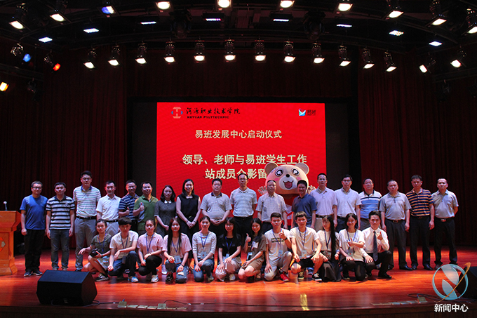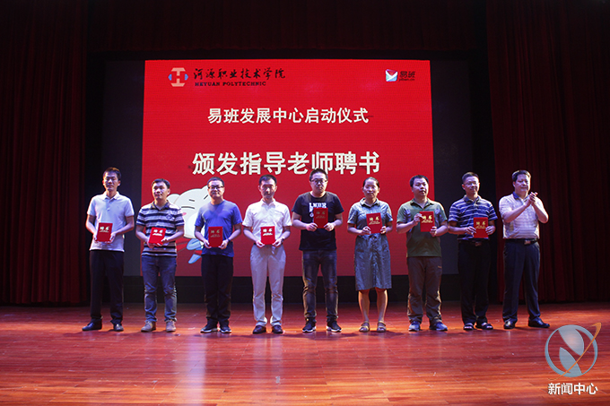 情况汇报完成后,我校各领导老师在全场观众的见证下,共同进行了河职院易班启动仪式,陈农心副校长为易班学生工作站八位指导老师颁发聘书。