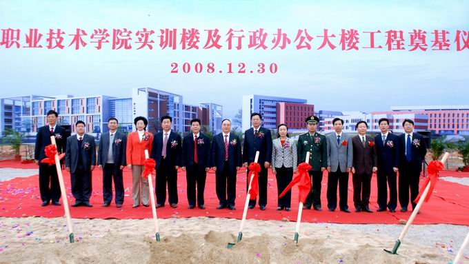刘校长在奠基仪式上致辞指出,我校为了适应省职业教育发展的新形势,2007年以优异成绩通过教育局高职高专人才培养工作水平评估,2008年我校乘势而上,提出“加快发展、速提内涵”新思路和创建广东省示范性高等职业院校的新目标。经过努力,我校内涵建设取得可喜成绩,教育教学质量迈上了新台阶。他表示,学院实训楼及行政办公楼的动土兴建,必将为广大师生营造一个良好的工作、学习和生活环境,必将有力推动我院创建目标是顺利实现。